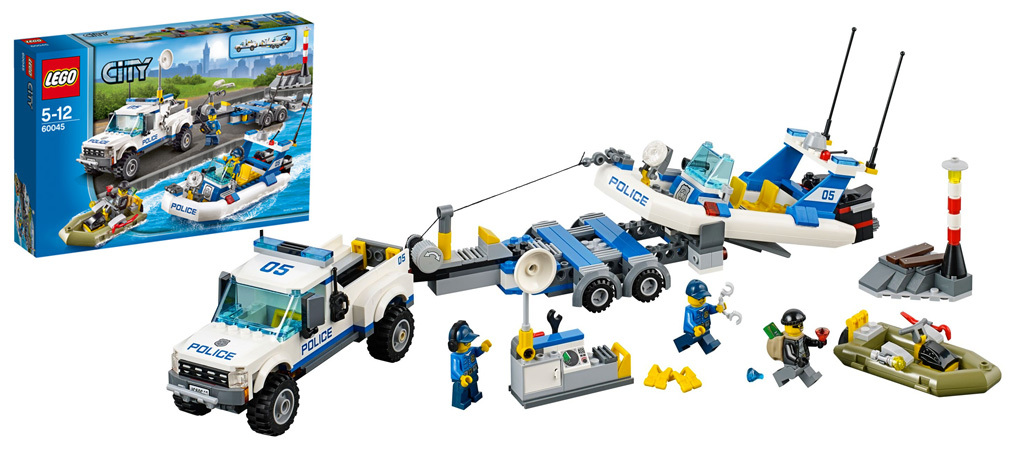 A gonosztevő gumicsónakján menekül a pénzzel együtt. Siess a helyszínre a rendőrségi furgonnal és keresd meg a mobil megfigyelő állomás segítségével. Kapcsold le a pótkocsit, használd a csörlőt és tedd vízre a rendőrségi gumicsónakot, és vesd bele magad az üldözésbe. Kapd el a gonosztevőt, mielőtt elérne a világítótoronynál lévő búvóhelyére és elrejtené az árut a faládákban! A csomagban 3 minifigurát, és válogatott kiegészítőket találsz: 2 rendőr és egy gonosztevő.