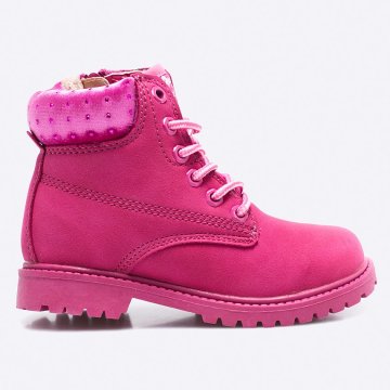 Gyermek téli cipő kollekció American Club. Szintetikus anyagból készült bélelt modell. - Téliesített modell. - Cipzáras zárás. - Kerek, megerősített orr. - Barazdált talp. - Merevített sarok. - Textil belső. - Fűzős modell. - Betét hossza: 18 cm. - Megadott méret: 27. Összetétel: Szár: szintetikus anyag Belseje: textil Talp: szintetikus anyag Termék azonosító: 4930-OBG0LT Gyártó kód: 1018.17.K16807.1