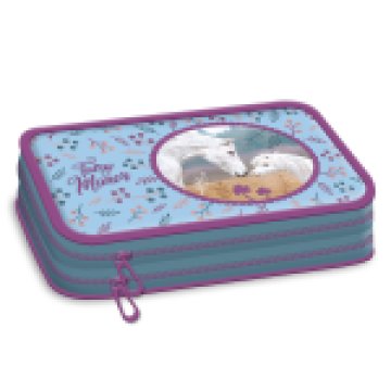 - Belül műanyaggal bevont merev lapokkal, gumis kialakítással a ceruzák, vonalzó, hegyező és radír tárolásához