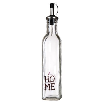 A szögletes formájú SWEET HOME mintás 250 ml-es üveg olajkiöntő palack műanyag kupakkal és tömítéssel ellátott fém kiöntővel van felszerelve, így nagyban megkönnyíti az olajjal végzett munkát.