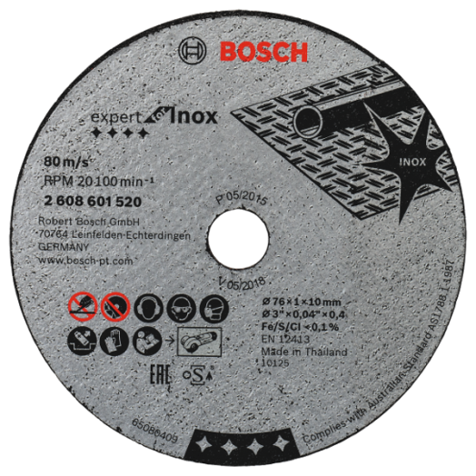BOSCH VÁGÓTÁRCSA INOX 76X1X10MM jellemzők