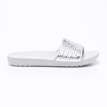 Strandpapucs kollekció Crocs. Szintetikus anyagból készült modell. - Préselt anyag - Barazdált talp. - Kényelmes belső. - Lapossarkú modell. - Betét hossza: 24 cm. - Megadott méret: 37,5. szintetikus Összetétel: szintetikus anyag Termék azonosító: 100-KLD01L Gyártó kód: 205130.PearlWhSil
