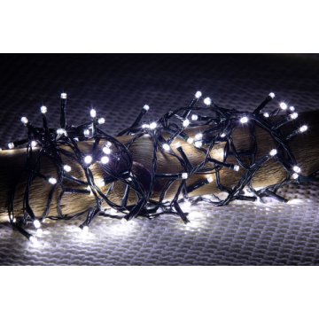 Dekortrend Kültéri LED Fényfüzér, 50 méter hosszú, 1000 db Hideg fehér LED világítással. Varázsolj meghitt hangulatot a kertedbe, ezzel a kiváló minőségű LED Fényfüzérrel. Tökéletesen alkalmas fák, kerítések, bokrok, épületek dekorálására. Klasszikus, hideg ezüst színt bocsát ki. Mérete: 50 m hosszú+ 3m kábel.