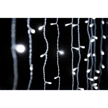 Crystalline toldható LED fényfüggöny 200 x 250 cm, 500 db HIDEG FEHÉR LED, átlátszó kábel, Kül- és beltéri használatra. eseszép fényfüggöny átlátszó kábellel korlátok, falak, oszlopok dekorálására. A toldható rendszer lehetővé teszi, hogy akár 1200 LED-ig egybe kapcsoljunk több Crystalline terméket. A fényháló szálai ugyanolyan hosszúak, és egy központi kábelről lógnak le, ezért szabályos, egységes fényfal építhető belőle. Az átlátszó kábel alig észrevehető, a LED-ek fényei maximálisan érvényesülnek. Visszafogott tiszta fehér, natúr fénye hűvös, elegáns hangulatot teremt. A Dekortrend Crystalline led fényfüzér család kiválóan alkalmas rendezvények, esküvők, kertek ünnepi vagy alkalmi díszítésére. IP44-es szigetelésének köszönhetően kültéren is használható. A Crystalline kültéri fényfüzér, fényháló, jégcsap fényfüzér és fényfüggöny szabadon egymásba toldható. A tápegység nem része a csomagnak, azt külön kell megvásárolni. Keresd a KAT 900 cikkszámú terméket. 1200 LED-enként szükséges egy trafó beépítése. Mérete: 2x2,5 m.