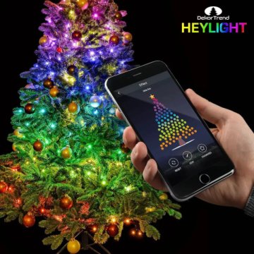 Dekortrend Heylight okos fényfüzér, 160 RGB LED, fekete kábel, 16 m + 3 m kábel A Dekortrend HEYLIGHT telefonnal vezérelhető fényfüzér, igazi karácsonyi csoda. Vezéreld a fényfüzért a mobilodról, köss össze több fényfüzért csoportba, és színezd őket egyszerre. Legyenek minden nap új karácsonyi fények a fádon! Töltsd le az applikációt Android vagy iOS mobilra, párosítsd a fényfüzér(eke)t Bluetooth-on keresztül, és máris kedvedre színezheted a karácsonyfádat. https://apps.apple.com/us/app/heylight/id1454998115 https://play.google.com/store/apps/details?id=com.sunlayheylight&hl=en Ha több HEYLIGHT fényfüzéred is van, akkor csoportba rendezve egyszerre is vezérelheted őket. Az applikáción keresztül időzítést is beállíthatsz, automatikus bekapcsolás és kikapcsolás funkciókkal. Ha több fényfüzéred is van, több telefont is csatlakoztathatsz hozzájuk. A színek mellett többféle effektet is beállíthatsz, a legjobbakat elmentheted a kedvencekbe. A karácsonyi fényfüzér soha nem lesz többé unalmas! Az applikáció nyelve: angol Kapcsolat: Bluetooth A kábelen található vezérlővel is irányítható, mobil applikáció nélkül is. S gomb – színválasztás 10-féle szín közül: piros, zöld, kék, sárgászöld, tengerkék, ibolya, borostyán, türkiz, lila, pink F gomb – funkció 14-féle program közül: színes hóesés, színváltós-villanós, színváltós futófény, piros csillagok, kék csillagok, zöld csillagok, kék-piros változó, piros-kék változó, piros futófény, kétszínű kígyózó, színváltó pulzáló, multikolor hóesés, piros építkezős, karnevál Újraindítás: F gomb nyomva tartva 7 mp-ig. Mobil applikáció funkciók: effekt-választás színbeállítás sebesség beállítás csoportba rendezés időzítés kedvencek effekt megosztás