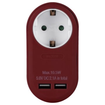 Entac vörös hálózati adapter földelt aljzattal és 2 USB-vel jellemzők