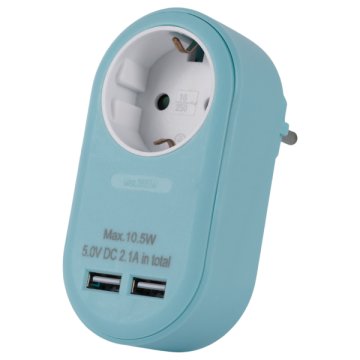Kék hálózati adapter földelt aljzattal és 2 USB-vel jellemzők