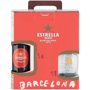 Estrella Damm világos sör ajándékcsomag pohárral jellemzők