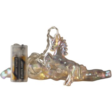 Mesés hangulat egész évben! A 10 darab, meleg fehér Led-del , 10 db átlátszó unikornisokból álló fényfüzér, kellemes, hangulatot biztosít bármely térben. Csak beltéren használható, IP20 védelemnek köszönhetően. 2 db AA elemmel működik. Időzíthető. Méretek & tartozékok: Díszítés: 10 db Átlátszó műanyag Unikornis Fényfürt hossza: 135 cm tápkábel nélkül Tápkábel hossza: 30 cm Tápkábel színe: átlátszó Díszíts stílusosan, világíts otthonosan – válaszd a Eurolamp fényfüzérjét, és tedd különlegessé minden pillanatot!