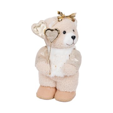 Élvezd a karácsony örömét minden évben, gondtalanul! Elegáns külsőjével mindenkit meghódít ez az álló, 31 cm magas, pezsgő színű Maci, masnival a hajában. Díszíts vele kedvedre és teremts egy felejthetetlen ünnepi hangulatot otthonodban!"