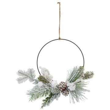 Ezzel a gyönyörű, zöld levelekkel és fehér gömbökkel dekorált nyitott koszorú, amely 40 cm átmérőjű, dekorálhatunk asztalokat, karácsonyfákat, akár kopogtatónak is használhatjuk. Ünnepi hangulat elengedhetetlen kiegészítője.