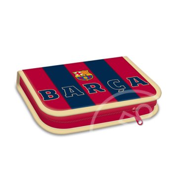 Egy rekeszes, FC Barcelona: Barca cipzáros feltöltött tolltartó, a spanyol sztár focicsapat, az FC Barcelona színeiben. A tolltartó belsejében rengeteg írószert találhatsz, amik elengedhetetlenek az iskolában: színes és grafit ceruzákat, golyóstollat, vonalzókat, radírt és színes filctollakat is. Méretek: 20 x 14 x 4 cm.