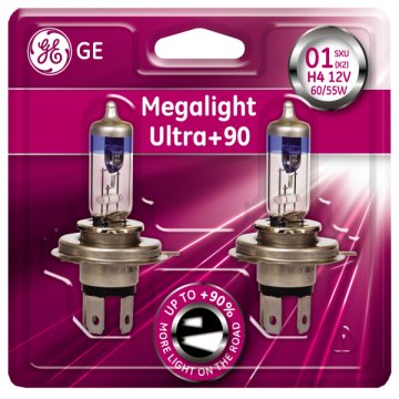 FÉNYSZÓRÓ H4 12V 60/55W GE MEGALIGHT ULTRA +90% 55W jellemzők