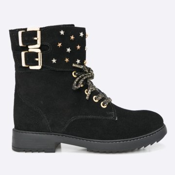 Gyerek Magasszárú cipő kollekció Gioseppo. Velúr bőrből készült modell. - Enyhen bélelt modell. - Kerek, megerősített orr. - Cipzáras zárás. - Barazdált talp. - Puha sarok. - Kényelmes belső. - Fűzős modell. - Dekoratív részletek. - Betét hossza: 19 cm. - Megadott méret: 32. szőrme szarvasbőr csipkés lapossarkú Összetétel: Szár: szarvasbőr Belseje: textil, természetes bőr Talp: szintetikus anyag Termék azonosító: 4921-OBG0KJ Gyártó kód: 41543.NEGRO