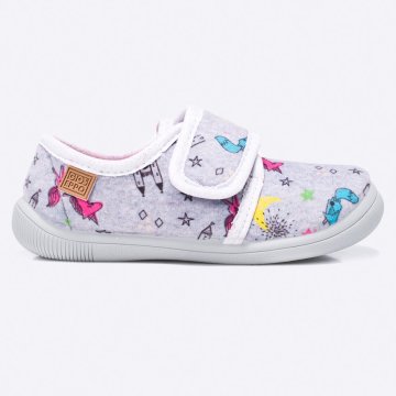 Gyerek papucs kollekció Gioseppo. Textilanyagból készült modell. - Mintás anyag: - Tépőzárás zárás. - Kerek, lágy orr. - Gumi talp. - Puha sarok. - Textil belső. - Lapossarkú modell. - Betét hossza: 15 cm. - Megadott méret: 26. textil Összetétel: Szár: textil Belseje: textil Talp: szintetikus anyag Termék azonosító: 4921-OBB0DG Gyártó kód: 40998.GRIS