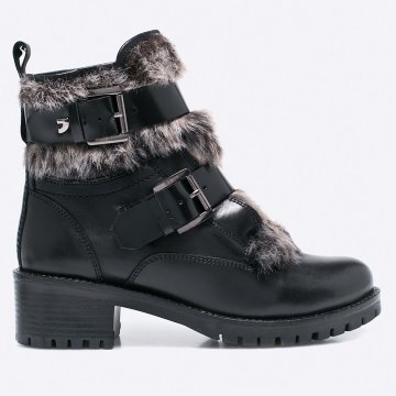 Magasszárú cipő kollekció Gioseppo. Natúr bőrből és textil anyagból készült modell. - Átmeneti modell. - Kerek, megerősített orr. - Cipzáras zárás. - Barazdált talp. - Merevített sarok. - Kényelmes belső. - Stabilsarkú modell - Dekoratív részletek. - Sarok magassága: 4,8 cm. - Betét hossza: 24 cm. - Megadott méret: 37. bőr textil béleletlen Összetétel: Szár: textil, természetes bőr Belseje: textil, természetes bőr Talp: szintetikus anyag Termék azonosító: 4930-OBD30A Gyártó kód: 41934.NEGRO