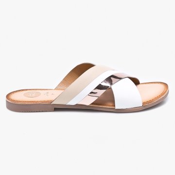 Strandpapucs kollekció Gioseppo. Natúr bőrből készült modell. - Stabil talp. - Bőrbetét. - Betét hossza: 23,5 cm. - Megadott méret: 37. bőr Összetétel: Szár: természetes bőr Belseje: természetes bőr Talp: szintetikus anyag Termék azonosító: 4921-KLD0CD Gyártó kód: 44130.White