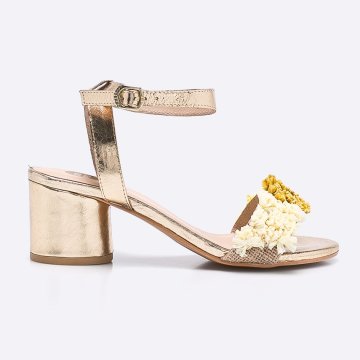 Szandál kollekció Gioseppo. Natúr bőrből és szintetikus anyagból készült modell. - Sima anyag. - Zárás töves csattal. - Bőr belsőrész. - Stabilsarkú modell - Dekoratív részletek. - Sarok magassága: 6,5 cm. - Betét hossza: 23,5 cm. - Megadott méret: 37. bőr szintetikus Összetétel: Szár: szintetikus anyag, természetes bőr Belseje: természetes bőr Talp: szintetikus anyag Termék azonosító: 4921-OBD2W7 Gyártó kód: 44123.Gold