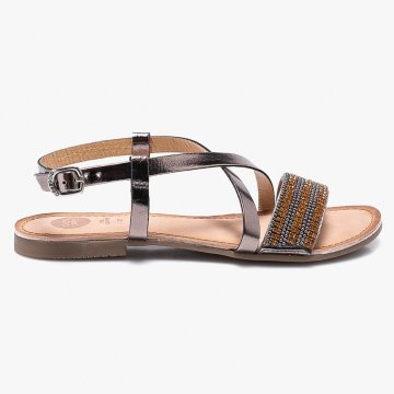 Szandál kollekció Gioseppo. Szintetikus anyagból és natúr bőrből készült modell. - Sima anyag. - Zárás töves csattal. - Csattal állítható. - Gumi talp. - Bőrbetét. - Lapossarkú modell. - Dekoratív részlet elöl. - Betét hossza: 24 cm. - Megadott méret: 37. bőr szintetikus Összetétel: Szár: természetes bőr Belseje: természetes bőr Talp: szintetikus anyag Termék azonosító: 4921-OBD41F Gyártó kód: 45278.pewter