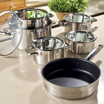 a szett tartalma: 5 db lábas fedővel és 1 db serpenyő