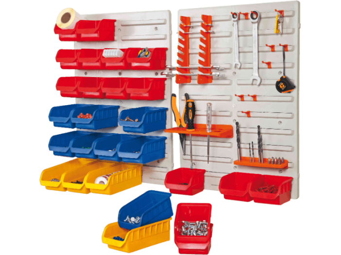 HANDY Fali rendszerező 43 db-os 840 (2x420) x 590 x 20 mm tulajdonságai: Különleges jellemzők: Anyaga: Műanyag, Anyaga: Műanyag Szín:, Szín: Szürke, Súly: 3 kg, Doboz tartalma: Csavarok és ti