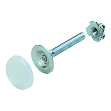 Állítócsavar M8x60mm beütő anyával fém horganyzott Állítócsavar műanyag , cinkezett. Átmérő D 6cm M 8-as menettel Teherbírása 50kg. Műanyag átlátszó alátéttel. Beüthető anyával Bútor magassága állításához, egyenetlen talajnál. Korrekt adjusting screw with T nut for leveling furniture, cabinets or structural bases with precision - For socket height adjustment+/- 40mm - With foot cap (transparent plastic) - With T nut M8 - Galvanized steel