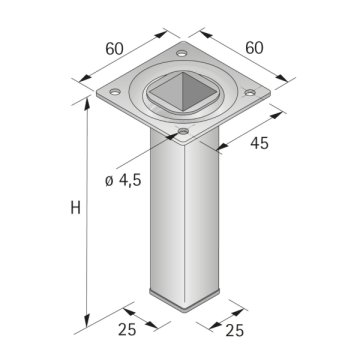 Bútorláb 25x25x250mm fém szürke négyszögletes jellemzők
