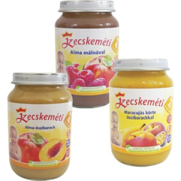 Kecskeméti gyümölcsös bébiétel 1311 Ft/kg, 4 hónapos kortól, többféle