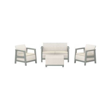 Keter Scandi Linea tárolós asztallal homok színű kerti bútor szett jellemzők