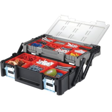 Szerszámosláda - szél.*ma.*mély.: 45,8*14,5*24 cm - nagy teherbírású konzolos láda - praktikus tárolókkal - fém kapcsok - nagy teherbírású fogantyú - áttetsző fedél - két méretű kivehető rekesszel megfelel a német termékbiztonsági törvény (prodsg) meghatározott minőségi és biztonsági előírásainak