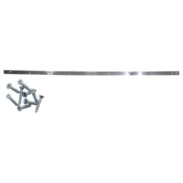 Standard méretű rozsdamentes küszöbsín. Anyaga 0,8 mm vastag rozsdamentes lemez, furatokkal és rögzítő csavarokkal. Fényesre polírozott, lakkozatlan kivitel.
