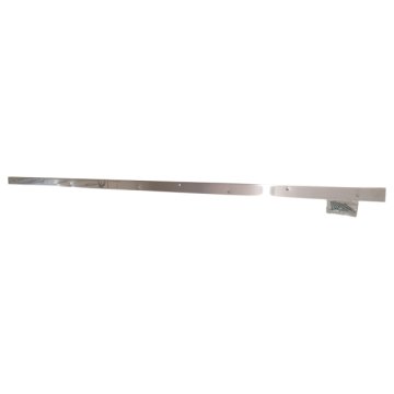 Standard méretű rozsdamentes küszöbsín. Anyaga 0,8 mm vastag rozsdamentes lemez, furatokkal és rögzítő csavarokkal. Fényesre polírozott, lakkozatlan kivitel.