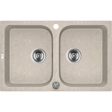 CELIA kétmedencés gránit mosogató, szín: bézs, méret: 76x48x18,4 cm, nagy medence, 3,5"-os helytakarékos dugókiemelős szifonnal