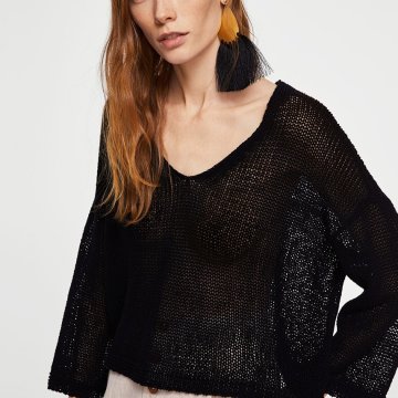 Pulóver kollekció Mango. Azsúros anyagból készült v-nyakú modell. - Laza fazon. - Süllyesztett vállvonal. - Hegyes nyakkivágás. - Sima dzsörzé. - Méretek: mellkas / derék / csípő XS 82/62/90 86/66/94 S M 92/72/100 98/78/106 L < br /> XL 104/85/112. alap modell rövid Összetétel: 100% pamut Termék azonosító: 5921-SWD03T Gyártó kód: 23087027