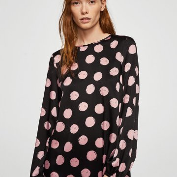 Ruha kollekció Mango. Mintás szövetből készült laza modell. - Laza fazon. - Kerek nyakkivágás. - Mintás szövet: bordás mini Összetétel: 100% poliészter Termék azonosító: 5921-SUD013 Gyártó kód: 21053045