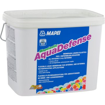 Felhasználásra kész, nagyon gyors száradású, rugalmas, kenhető vízszigetelő-anyag bel- és kültéri vízszigetelésre. Vízszigetelés kerámia burkolólapok, kő vagy mozaik burkolat fektetése előtt az alábbi helyeken: · erkélyek és teraszok; · fürdőszobák és zuhanykabinok; · mosóhelyiségek; · szaunák és általában a nedves környezetű helyiségek. A Mapelastic AquaDefense felhordható: · betonra; · cementkötésű esztrichek vagy különleges kötőanyagú esztrichekre (például Topcem, Topcem Pronto, Mapecem vagy Mapecem Pronto); · gipszkartonra (csak beltérben); · meglévő kerámiára burkolólap, műkő vagy természetes kőlap aljzatokra; · cementkötésű vakolatra.