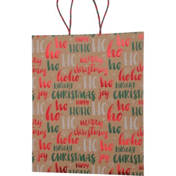 Ajándék tasak, 4 féle: autós, hoho, fás, boldog karácsonyt, anyaga: papír, mérete: 32x26x10 cm