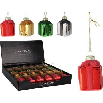 ANYAGA:ÜVEG, MÉRET: 6X4X4 CM, 4 VEGYES SZÍNEK: ARANY, EZÜST, PIROS ÉS ZÖLD,
