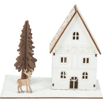 ANYAGA: FA, MÉRET:17X18X8CM ELEMMEL MŰKÖDIK: 2X AAA ELEM NEM TARTOZÉK, 3 FÉLE MODELL: TEMPLOM/ HÁZ 1 FÁVAL/ HÁZ 2 FÁVAL