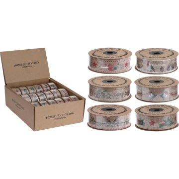 JUTA NYOMTATÁSSAL. MÉRET: 2,5X500CM,. 6 FÉLE MODELL:PIROS CSIILAG/ MADÁR/ CHRISTMAS/2 MADÁRí/ MADARAS CHRISTMAS/ PIROS CSILLAG+MADÁR