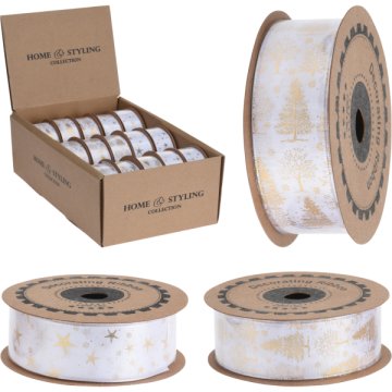 MÉRET: 2,5X500CM, FÓLIANYOMTATÁSSAL. FEHÉR ÉS ARANY SZÍNBEN. 2 FÉLE MODELL: FENYŐ/ CSILLAG