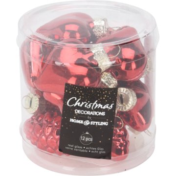 DÍSZ SZETT ÜVEG 12DB, PIROS SZÍV, TOBOZ ÉS CSILLAG jellemzők