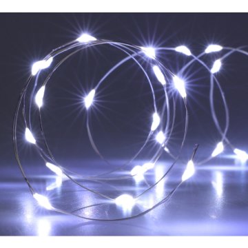 Beltéri, 40 ledes /hideg fehér, / LED tavolsag : 10cm/ kábel + fenysor hossz (cm):30 + 195 / Egyeb specifikacio: 8 / 16 idozito, Vezetekbe integralt micro-led Elemmel működik:3X AA - elemet nem tartalmaz