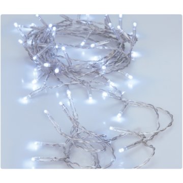 Beltéri, 50 ledes /hideg fehér/ LED tavolsag : 10cm/ kábel + fenysor hossz (cm):30 + 500/ Egyeb specifikacio: 8 / 16 idozito, átlátszó kábel Elemmel működik:3X AA - elemet nem tartalmaz