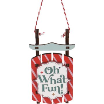 Függő dekor, szán és síléccel, 4 féle: síléc fehér, síléc piros, szánkó télapó, szánkó szöveggel, anyaga: fa, mérete: 12x7x4 cm