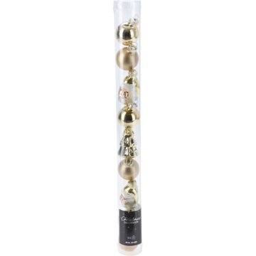 GÖMB ÉS FIGURA SZETT ÜVEG 34X3CM ARANY 6 GÖMB 3 FIGURA jellemzők