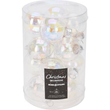 anyaga: üveg, a csomagolás mérete: 13x8x8 cm , 1 gömb mérete:3,5 cm , 16 db/ szett, színjátszós felület.