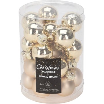 ANYAGA:ÜVEG, MÉRET 1 GÖMBNEK: 25MM, 24 RÉSZES KÉSZLET, 12X FÉNYES, 12X MATT, SZÍN: ARANY