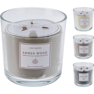 ANYAGA: ÜVEG, MÉRET: 16X15X15CM,3 FÉLE ILLATBAN (Vanília/Friss /Borostyánfa)