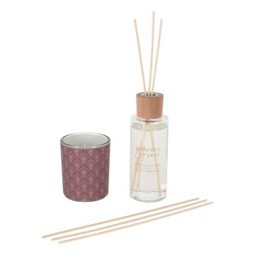 MÉRET: 20X14X13 CM, ÜVEG DIFFÚZOR 100 ML, 6DB RATAN BOTTAL ÉS ILLATOSÍTOTT ÜVEG GYERTYA MÉRET: D6X7CM, 2 VEGYES SZÍN/ILLAT: VILÁGOS RÓZSASZÍN/ PÜNKÖSDI RÓZSA, LILA/BÁRSONY RÓZSA,,